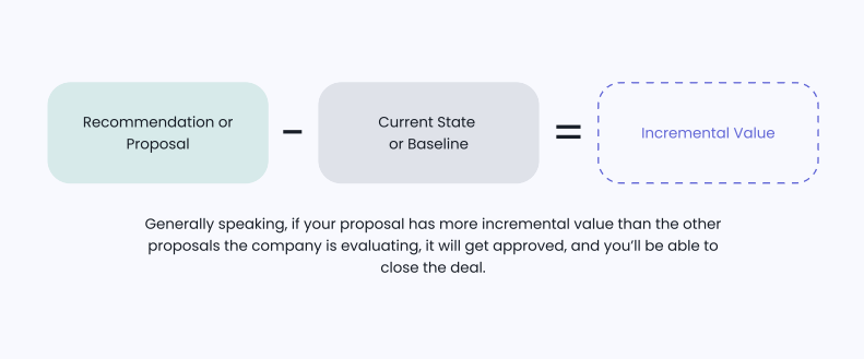 When you are proposing or recommending a new product or service, you’re fundamentally convincingthem that your proposal has incrementally more value than what they’re doing now. At Qarar we represent this with the “Master Equation”.